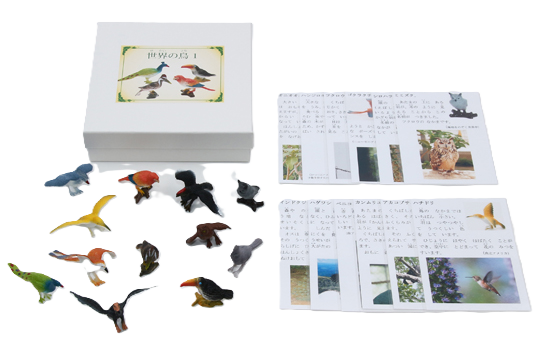 | 森や草原に生息する鳥のフィギュア12種と説明カードのセット。収納ケース付。 説明カード 10×14(p) |