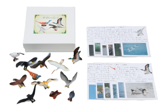 | 海や水辺にに生息する鳥のフィギュア12種と説明カードのセット。収納ケース付。 説明カード 10×14(p) |