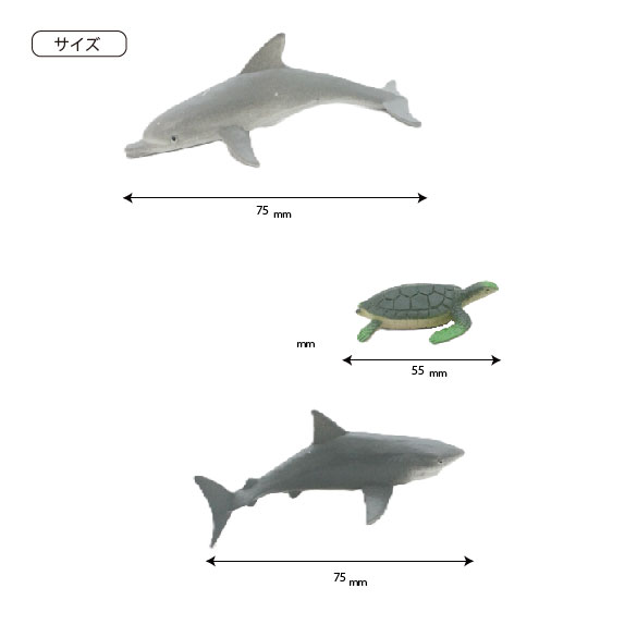 | 動物フィギュアは、7体。 マッコウクジラ、イルカ、サメ、タコ、エイ、ウミガメ、シャチ。 ノーブランドですが、それぞれの特徴がよく表現されています。 一覧カードの絵は、フィギュアを撮影したものです。 また、フィギュアとほぼ同じサイズなので、絵とフィギュアを重ねることができます。 文字はひらがな。 一覧カードと同サイズの名称カード付属します。 一覧カードと名称カードは、パウチラミネート加工しているので、長く使用でき、水拭きOK! 一覧カードサイズ 210×297o(A4) ※フィギュアは、小さいので、籠や、箱などに入れ「物と名前カード」の「おしごと」に使用できます。 |