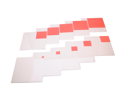 こんなカードがあれば、ピンクタワーを使った活動のバリエーションが広がります。ラミネートしてあるので、長く使えます。