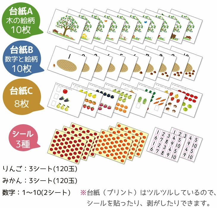 シール貼りセット かず りんごとみかん